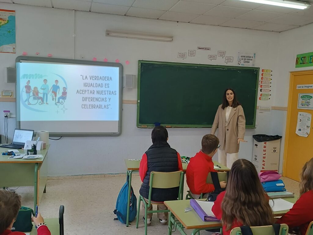 Nuestro alumnado de 6° de primaria han participado en una charla de sensibilización sobre el día a día de otros alumnos y alumnas con distintos tipos de necesidades y capacidades de un centro de Educación Especial. Hemos tenido el gusto de que nos visite Isabel, maestra del Colegio San Juan de Dios de Alcalá de Guadaira.