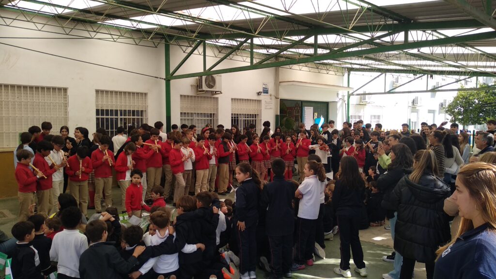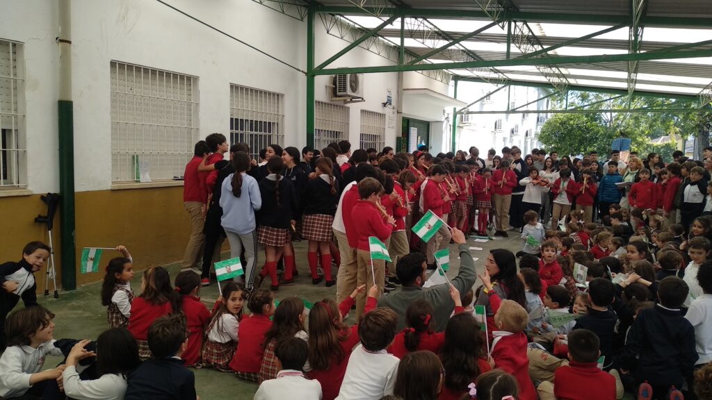 Como cada curso, con motivo de la celebración del Día de Andalucía se han celebrado diversas actividades conmemorativas de esta efeméride. Se realizó el tradicional desayuno andaluz organizado por el AMPA La Buganvilla y nuestros alumnos de 5° y 6° de primaria y 1º y 2º de ESO interpretaron el himno andaluz, dirigidos por nuestra profesora Ana Juviñá, al piano, y acompañados, al violín, por nuestro alumno Rodrigo González, de 1º.