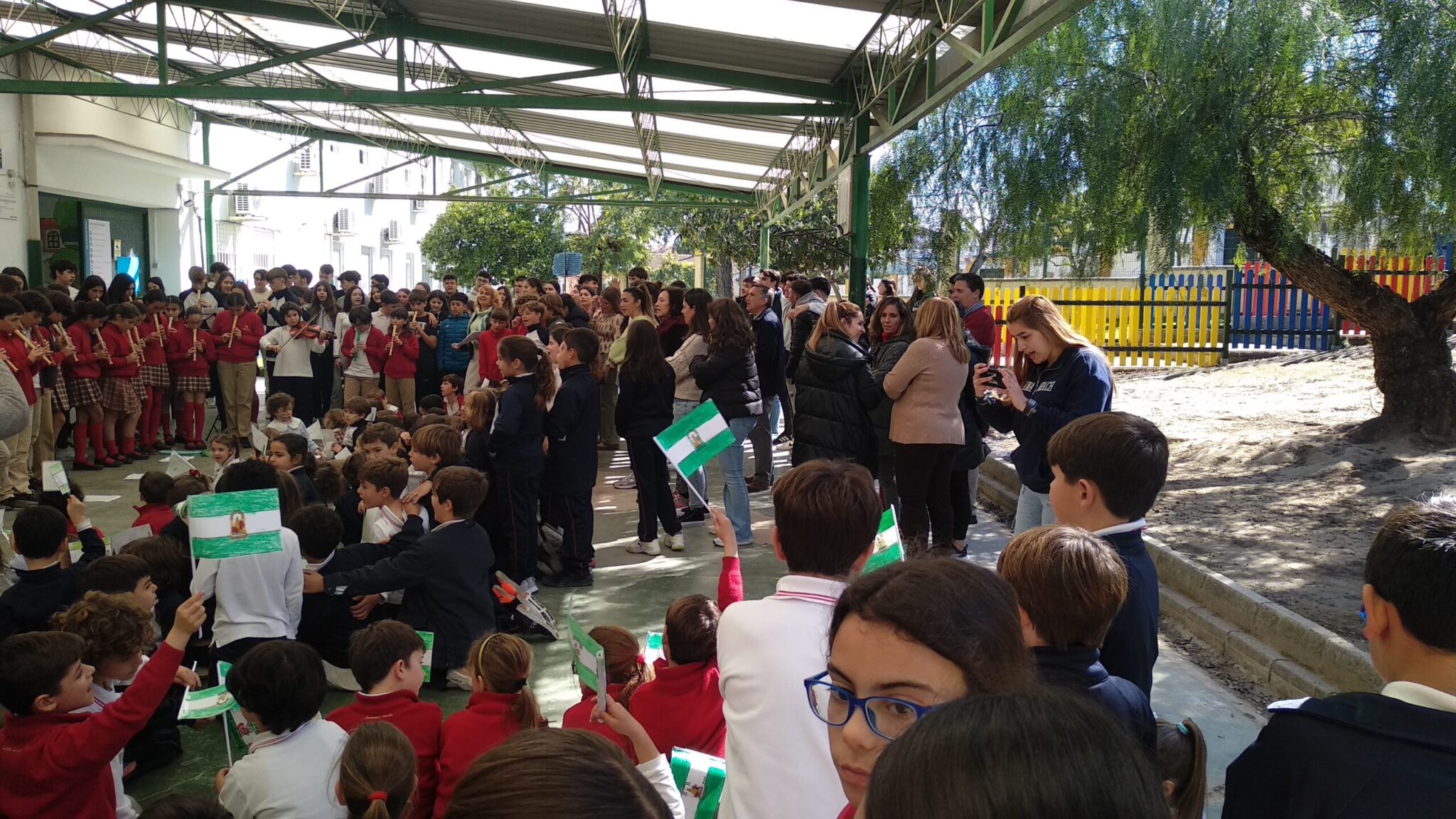 Como cada curso, con motivo de la celebración del Día de Andalucía se han celebrado diversas actividades conmemorativas de esta efeméride. Se realizó el tradicional desayuno andaluz organizado por el AMPA La Buganvilla y nuestros alumnos de 5° y 6° de primaria y 1º y 2º de ESO interpretaron el himno andaluz, dirigidos por nuestra profesora Ana Juviñá, al piano, y acompañados, al violín, por nuestro alumno Rodrigo González, de 1º.