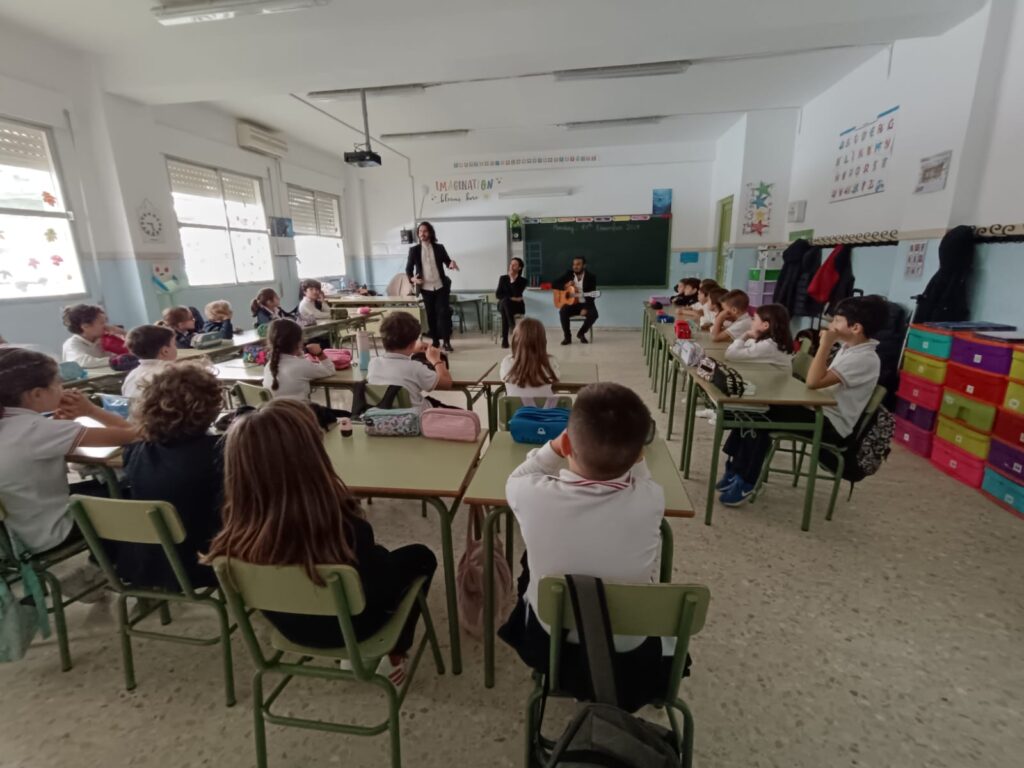 El pasado mes de noviembre, con motivo de la calebración del Día del flamenco, nos visitó un espectacular cuadro de flamenco que impartió una clase magistral a nuestro alumnado de 2º de primaria. Los niños aprendieron y disfrutaron con estos artistas.