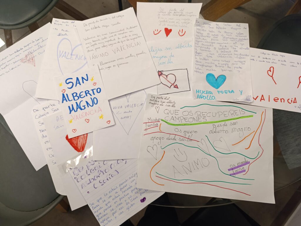 La pasada semana salieron los envíos del material recogido para los afectados de la DANA. Muchos de nuestros alumnos acompañaron esos envíos con notas de ánimo para las familias que han vivido la tragedia.