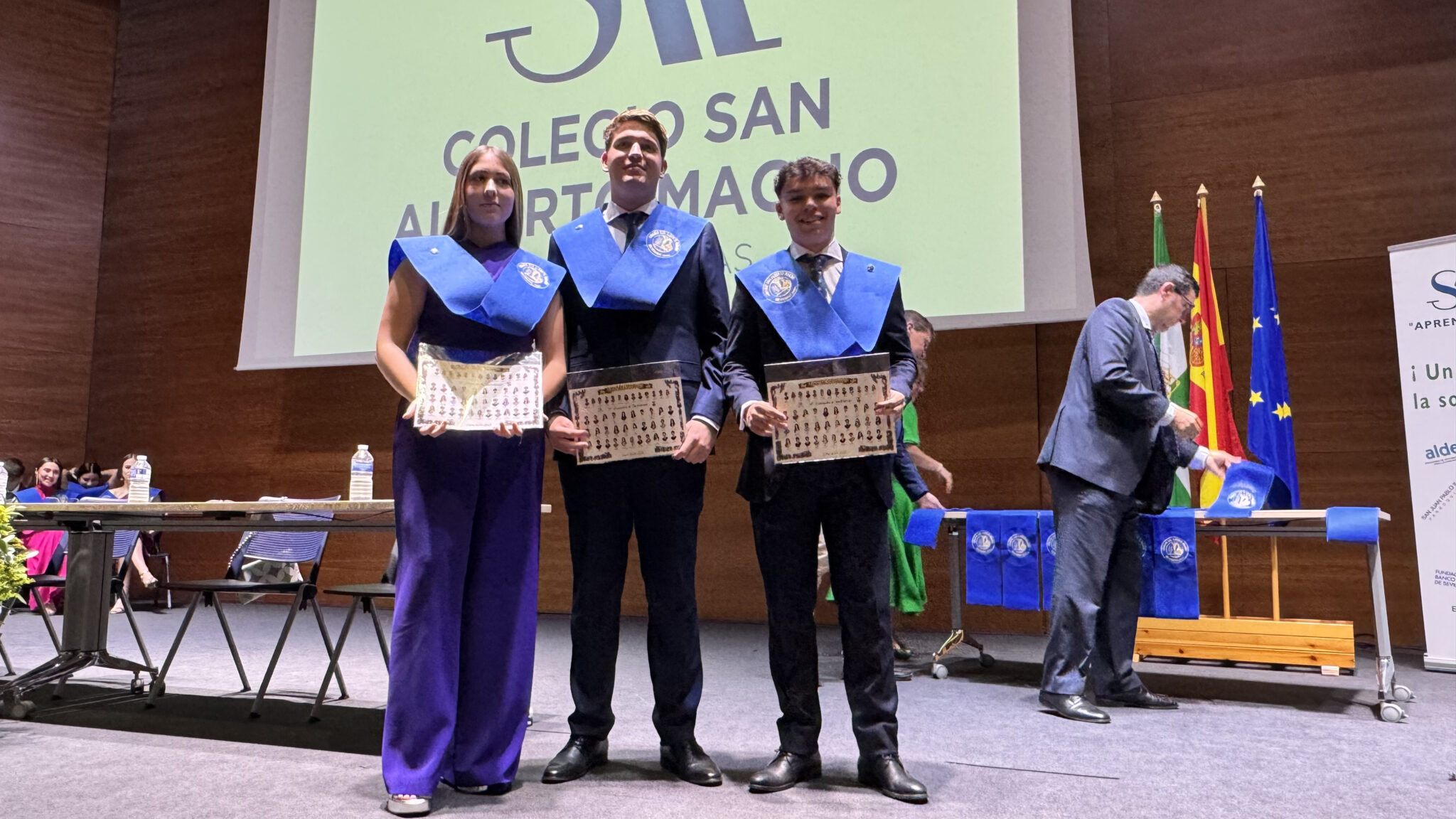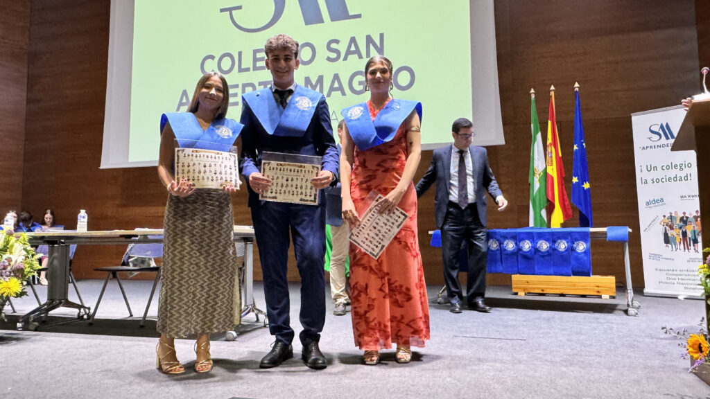 El pasado día 29 de mayo celebramos el acto de graduación de la promoción de bachillerato 2023-25 en el Salón de actos de la Ciudad del conocimiento de Dos Hermanas. El evento fue dirigido por Jesús Tortajada, Presidente de COPSAM, contando con la presencia de nuestra directora, Inmaculada Sequera y del jefe de estudios, Ismael Márquez.