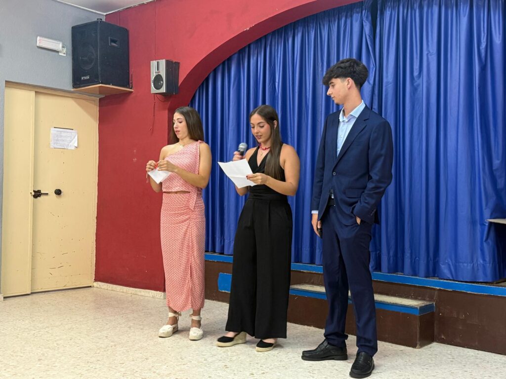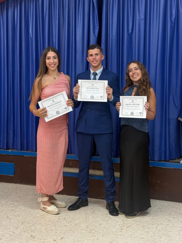 El pasado lunes realizamos el acto de Graduación de nuestros alumnos de 4º de ESO de la promoción 2021-2025. Se inició la celebración con unas palabras del Jefe de Estudios, Ismael Márquez, seguido del discurso del representante de los alumnos Carmen Reyes, Carla Vázquez y Jaime de Fuentes, que se despedía de sus compañeros. Luego, junto con las representantes del AMPA, se hizo entrega de las fotografías de grupo y de los diplomas a la Mejor compañera, el Más simpático y Mejor expediente. Finalmente se cerró el acto con unas palabras de la Directora, Inma Sequera.