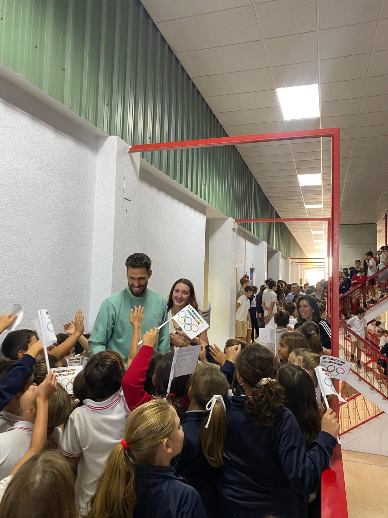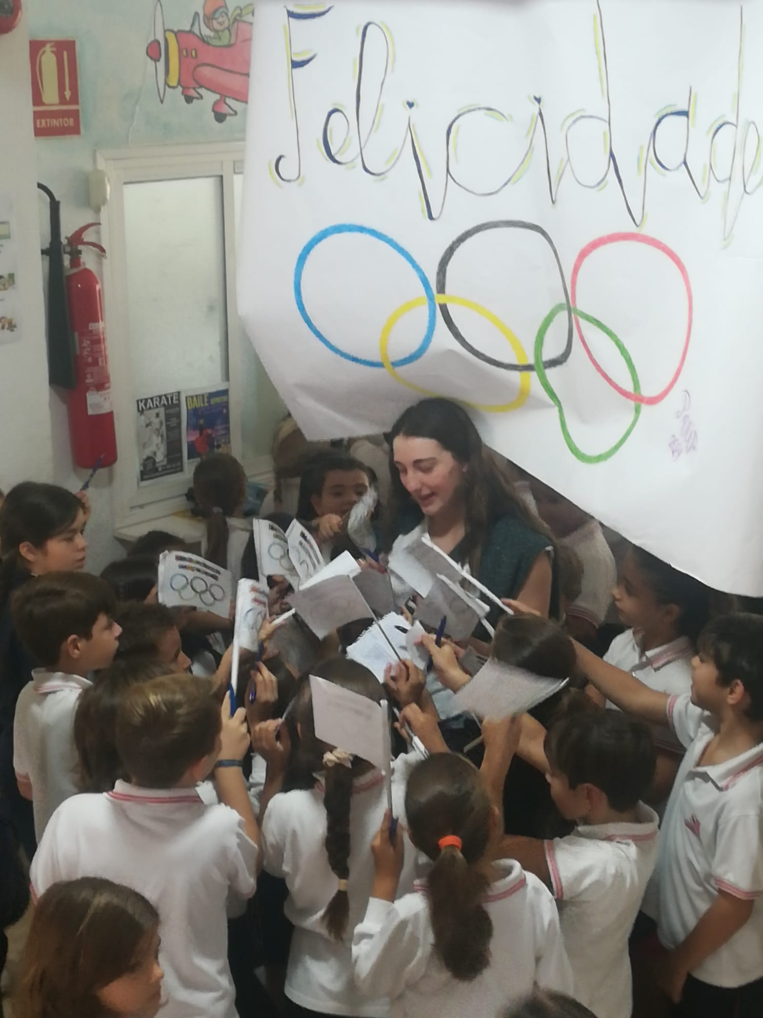 Posteriormente mantuvieron un coloquio con los alumnos de bachillerato y 4º de ESO en el que pudieron preguntarles sobre su carrera deportiva, su época como estudiantes y su última experiencia olímpica. Finalmente visitaron las aulas de los más pequeños donde no faltaron los autógrafos.