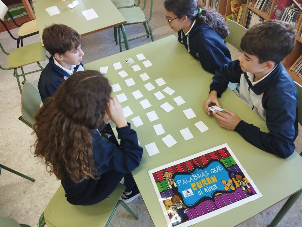 En la asignatura de Atención educativa, desde el proyecto SAM es MÁS, y en el marco de la Semana Cultural 2024, los alumnos de 1º y 2º de ESO han realizado unos minitalleres de concienciación sobre el cuidado de la salud mental, «Palabras que curan el alma». Han aprendido la importancia de cuidarnos no sólo físicamente, sino mentalmente, y cómo emplear gestos y palabras que fomenten relaciones personales saludables y rechazar cualquier conducta contraria a la convivencia en el entorno escolar.
