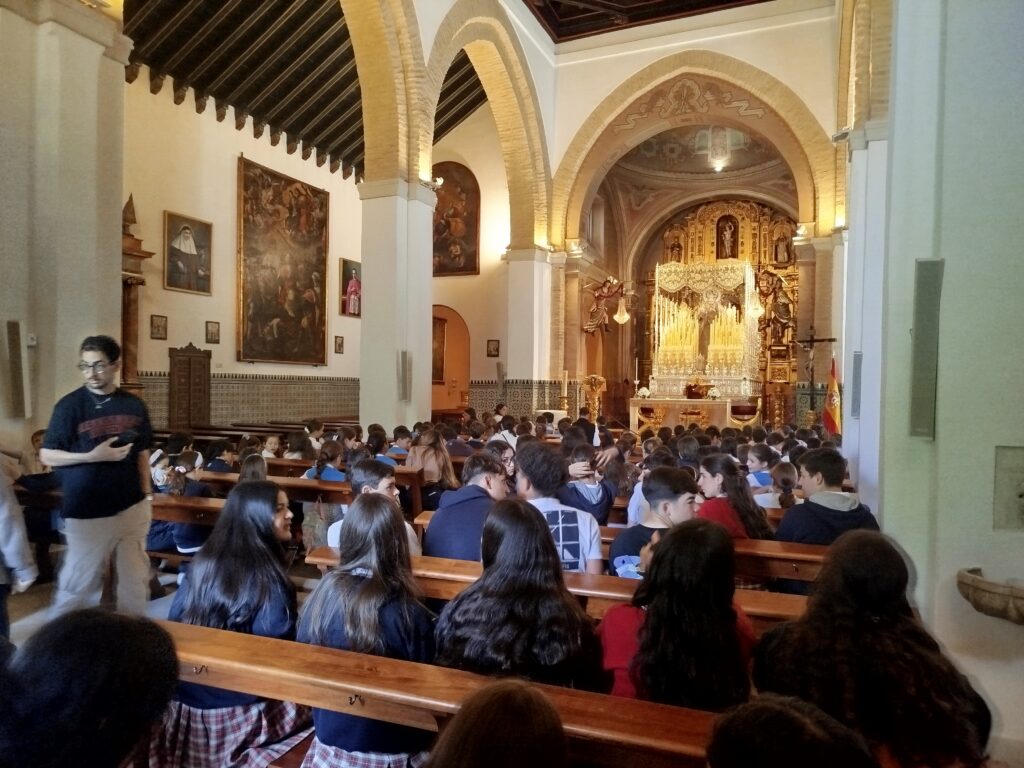 Con motivo de la proximidad de la Semana Santa, nuestros alumnos de 3° de ESO visitaron el pasado miércoles, junto con otros centros educativos, la Hermandad de la Paz, en la parroquia de San Sebastián del barrio de El Porvenir.
