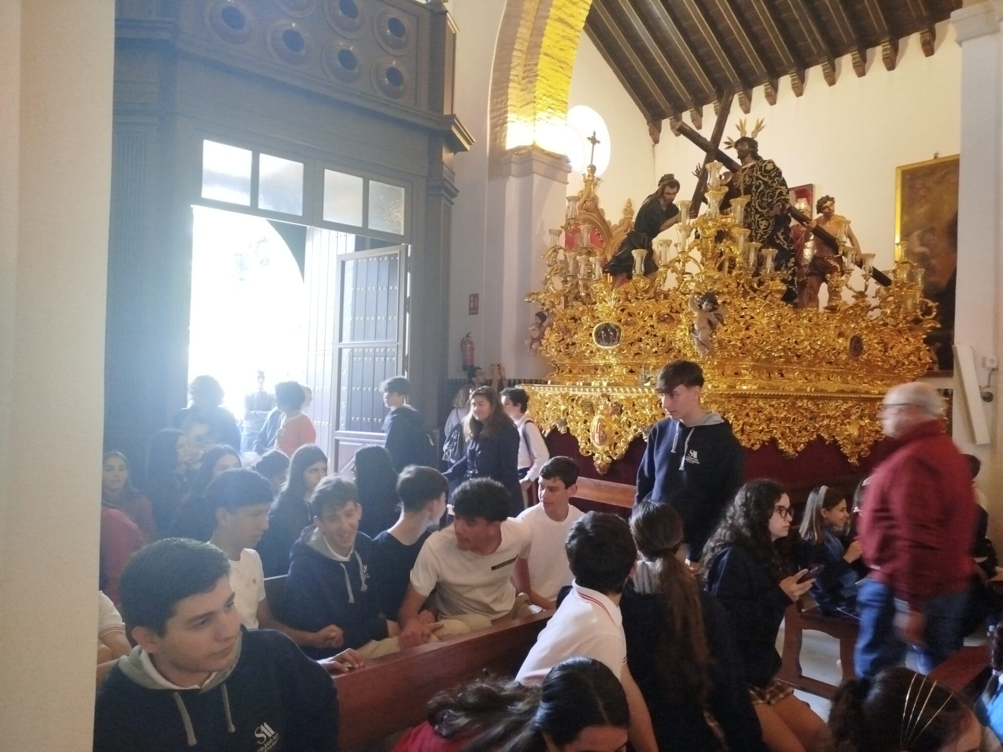 Con motivo de la proximidad de la Semana Santa, nuestros alumnos de 3° de ESO visitaron el pasado miércoles, junto con otros centros educativos, la Hermandad de la Paz, en la parroquia de San Sebastián del barrio de El Porvenir.
